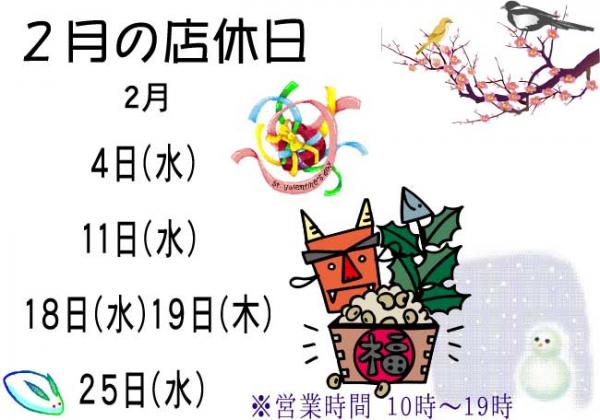 ❄2月休業日のお知らせ👹