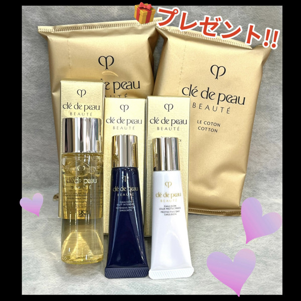 上記、ル・セラム 75ml(本体orレフィル)、50ml(本体orレフィル)のいずれかをご購入で、肌の輝きを作り出すクレ・ド・ポー ボーテの化粧水&乳液セット、約5,940円相当分をプレゼント‼️