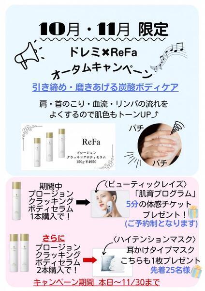 ドレミオータムキャンペーン📢 おすすめ!リファ高濃度炭酸ボディセラム。