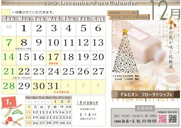 2025年12月の営業カレンダー♪