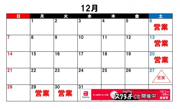 12月の営業案内